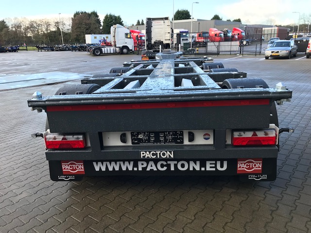 The container chassis series from Pacton has many aspects to it. In addition to fixed, semi-trailers for 20 ft., 30 ft., 40ft., and 45 ft., we also have extendible models. With our multifunctional top model, the FLEX-XL, the container chassis that is suitable for containers of all different shapes and sizes, we keep maximum flexibility in mind for the entrepreneur. However, the tipper container, tank container, light-weight, and the reinforced models for use at terminals all belong to our wide selection.